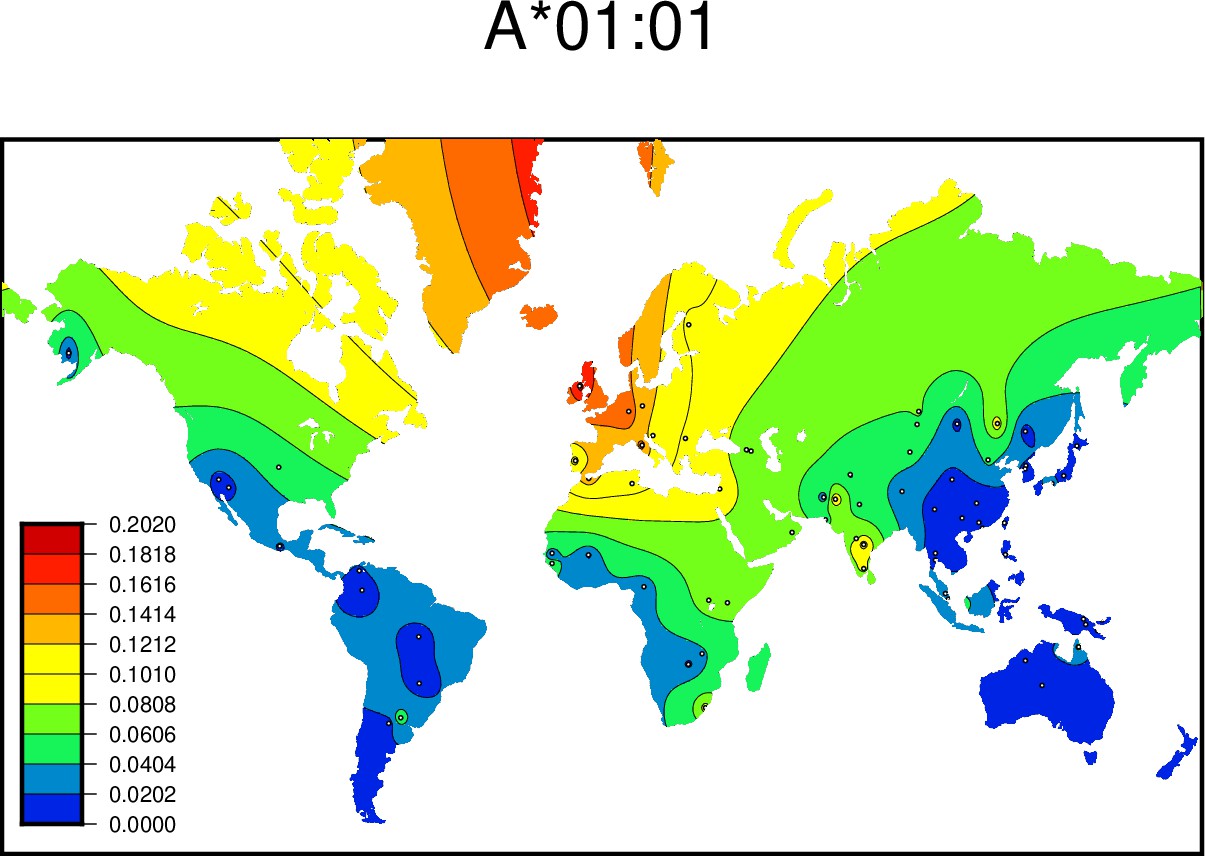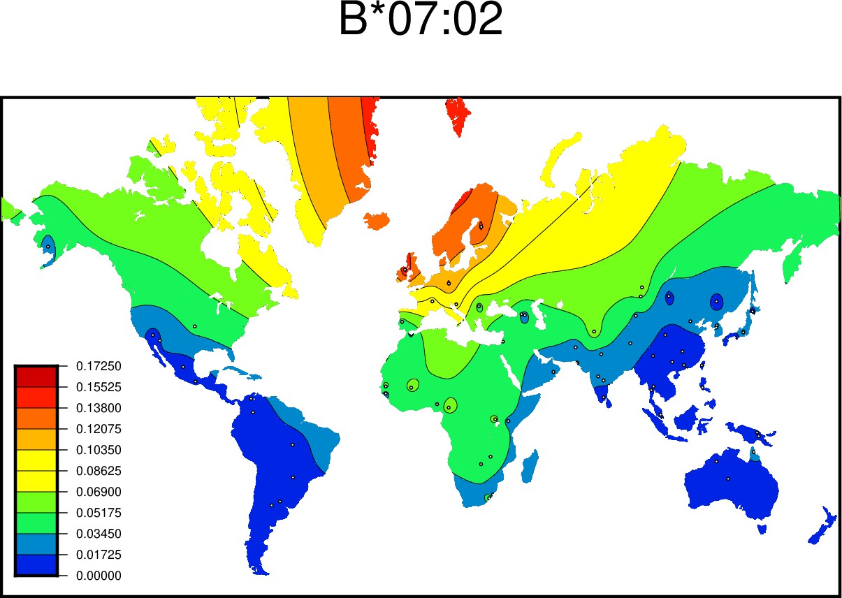All maps were generated using the Searching Shared HLA Amino Acid Residue Prevalence (SSHAARP) R package.